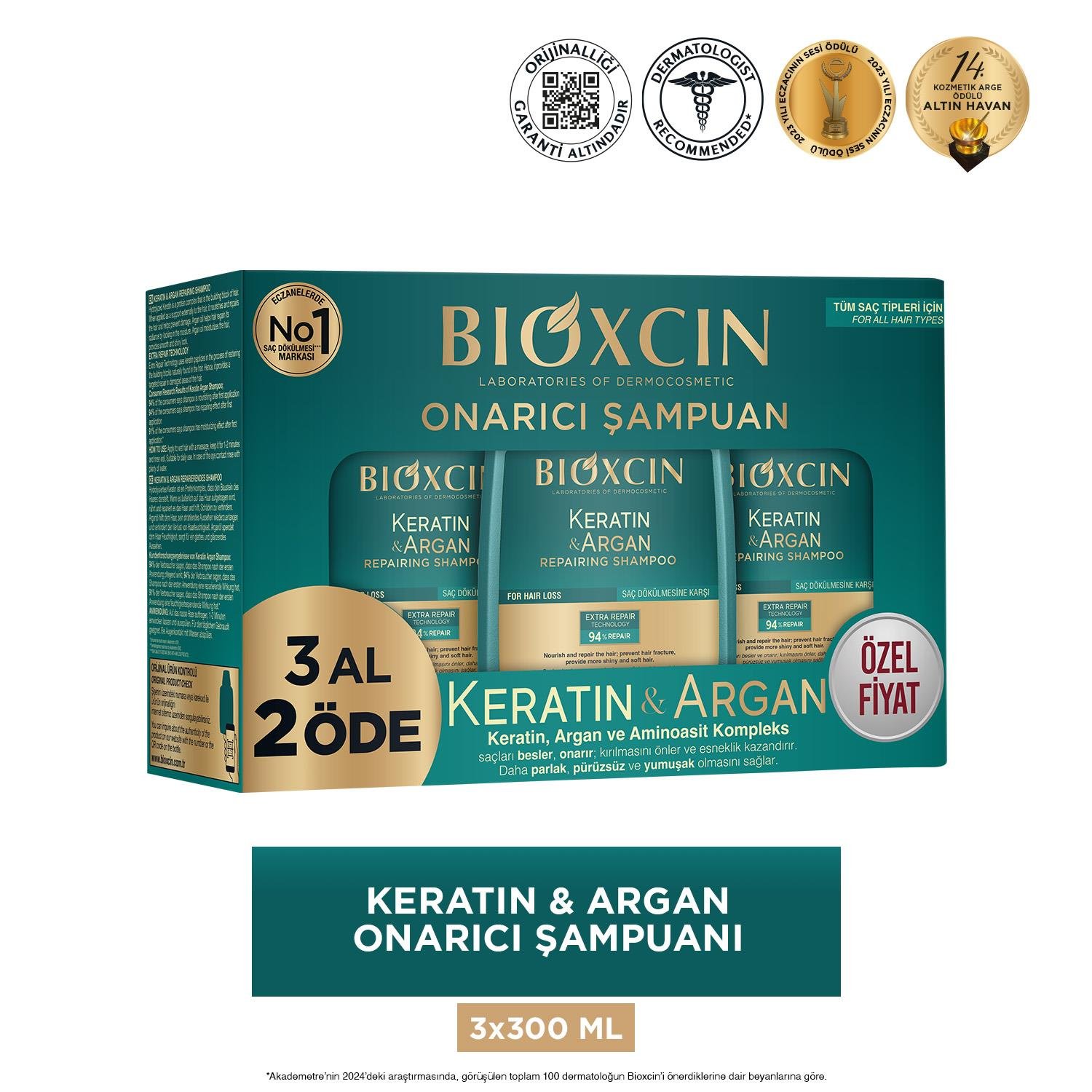 Keratin ve argan yağı ile zenginleştirilmiş şampuan, yıpranmış ve hasar görmüş saçları besleyerek onarmaya yardımcı olur, nem dengesini sağlar ve saç dökülmesine karşı korur.